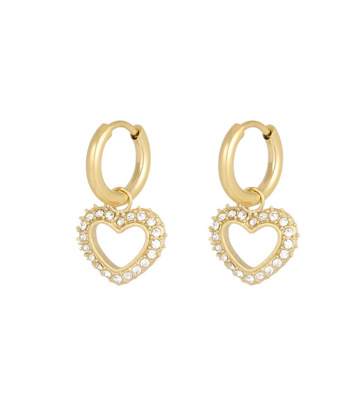 Oorbellen hartjes strass goud